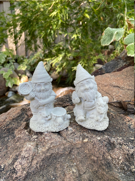 Handmade Pair of Garden Gnomes Display Cement Statues