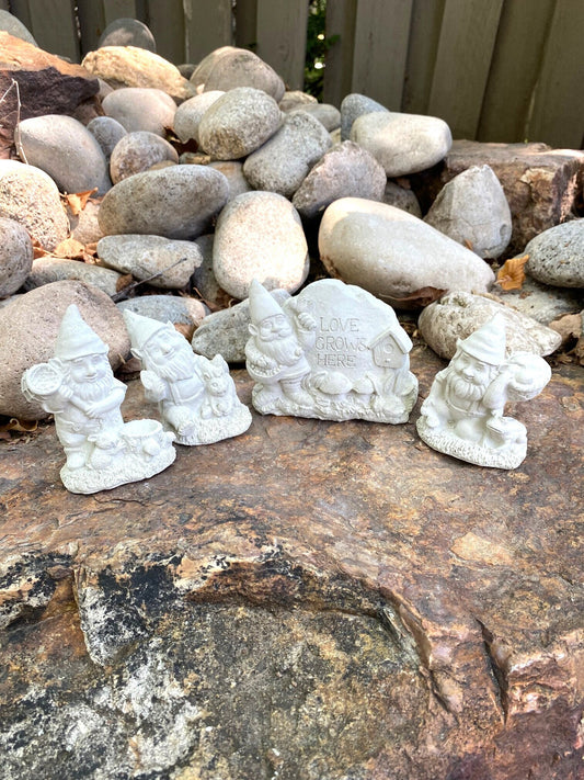 Handmade Garden Gnomes Full Four Piece Set Statues