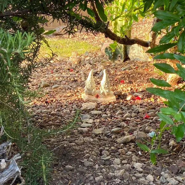 Charming wee fellows for garden protection. Well crafted charming artistry. Both of the pair arrived quickly and safely. They were put to work garden guarding. Good communication and courtesy from the Toadstool Team. Great price with free shipping available.